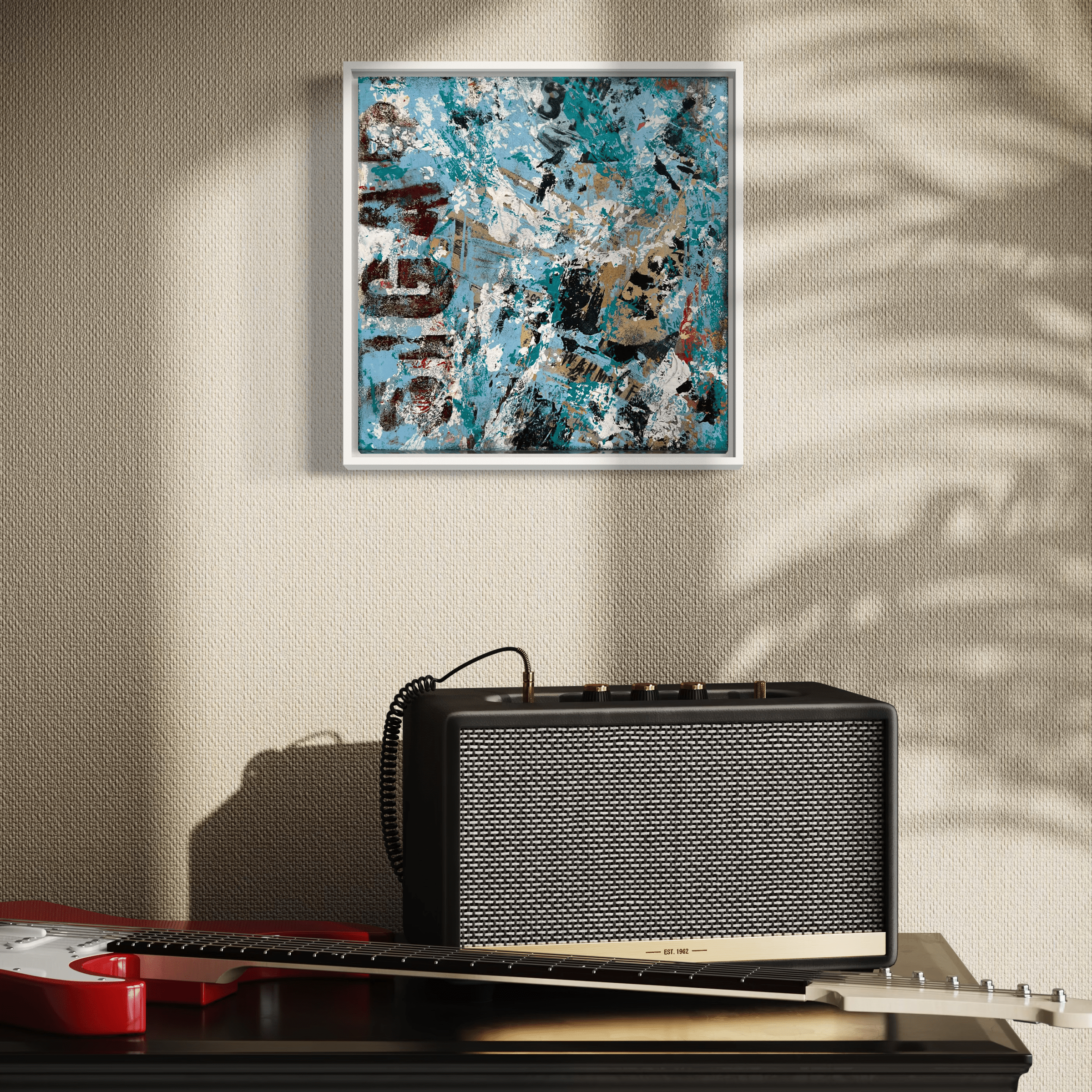 Faded print, paper, and paint dissolve into cool light. Beneath the white haze, traces of language and memory struggle to remain visible. Sigari (Blue) captures the quiet erosion of time—how words, like walls, are built to communicate but eventually surrender to silence. It feels both archival and ethereal, an echo of what once was.
